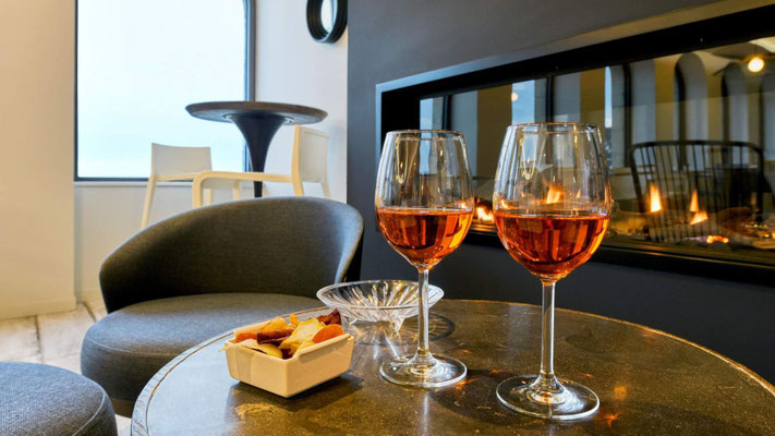 Die Bar mit Panoramablick lädt zum Aperitif ein – besonders beeindruckend ist der Blick auf die untergehende Sonne, die Boote im Hafen und das glitzernde Meer. Innen erwarten dich ein gemütliches Ambiente mit Lounge, Bibliothek, Kamin und ein Frühstücksbereich, in dem morgens ein liebevoll zusammengestelltes Buffet mit regionalen Produkten serviert wird. Für Erholung sorgt der Wellnessbereich mit beheiztem Innenpool (ca. 6 m × 2,5 m) und einem Jacuzzi – beide mit Blick aufs Meer, beheizt auf angenehme 28 °C und sowohl im Sommer als auch im Winter nutzbar.